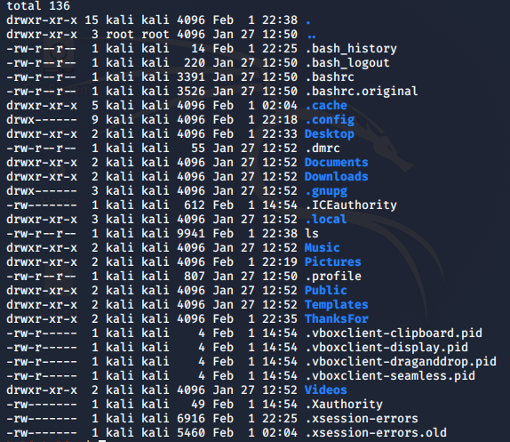 How kind of them to point it out to us. Simply but a directory is like a desktop folder. You can put stuff in it and with that same “ls” command we discussed earlier we can see what’s within that directory … imagine if we added an “ls -la” ….